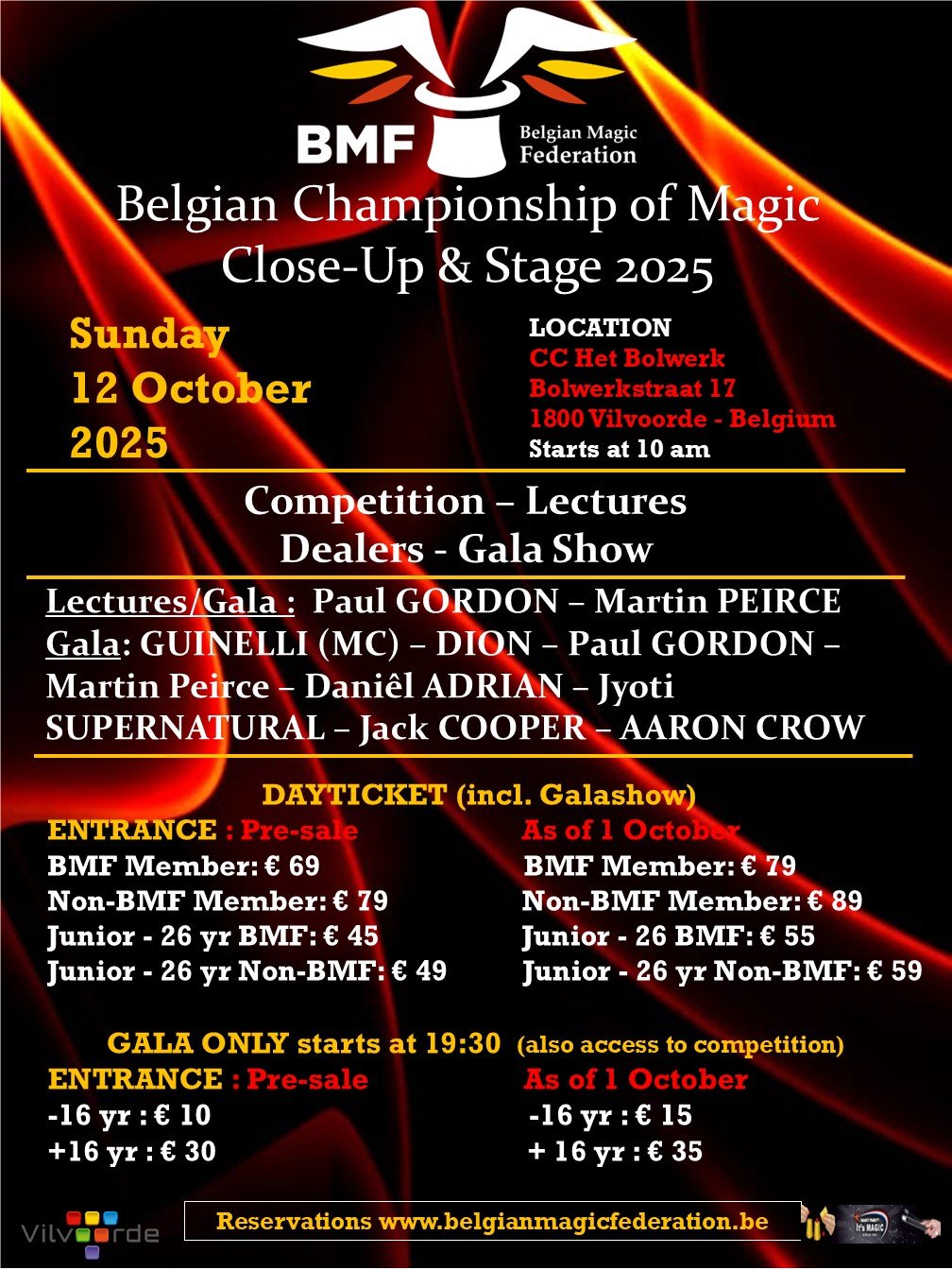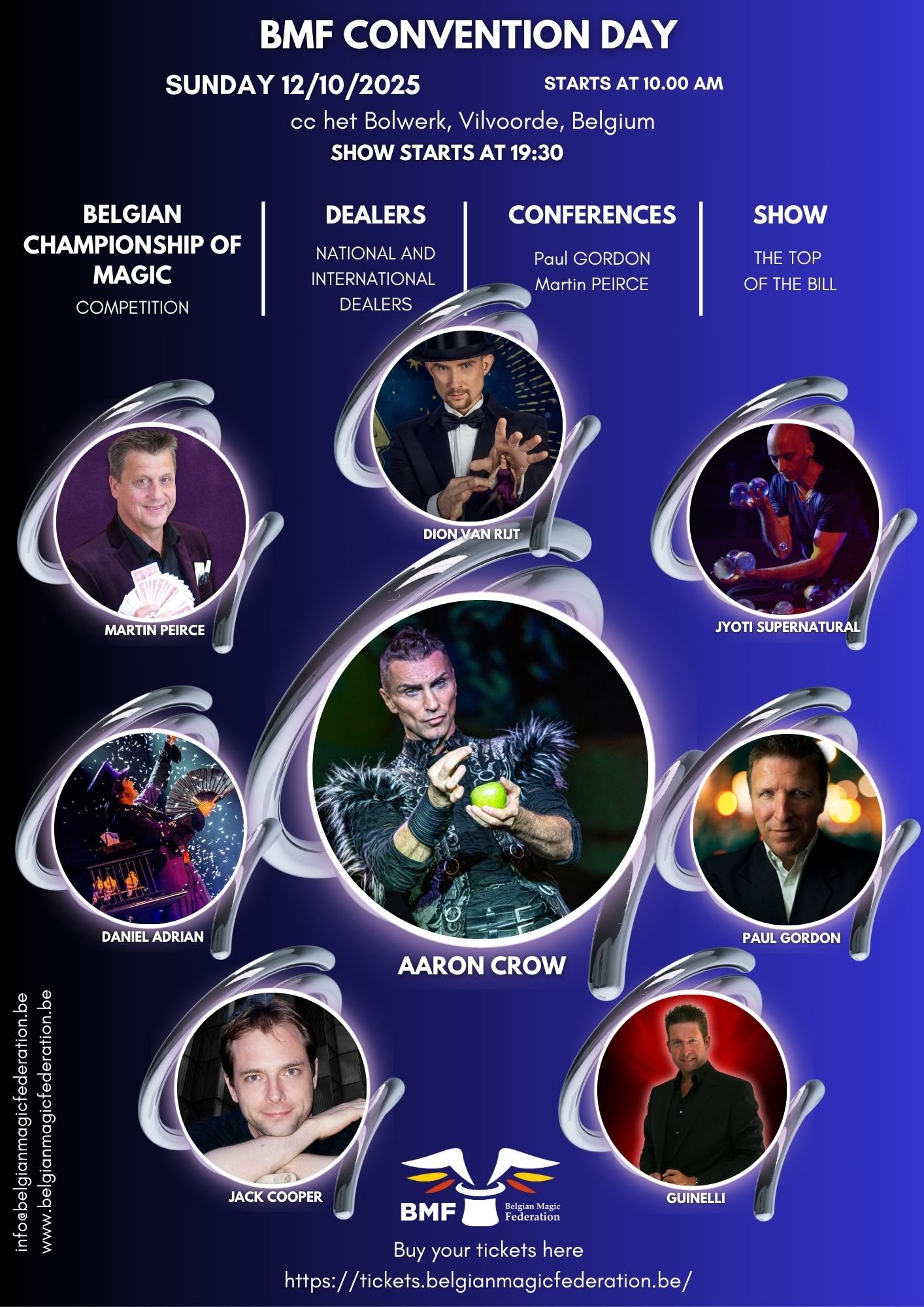 BMF Convention Day – Championship of Magic + Aan Google Kalender toevoegen + iCal / Outlook export Datum okt 12 2025 Verlopen! Tijd 10:00 - 12:00 Deel dit evenement