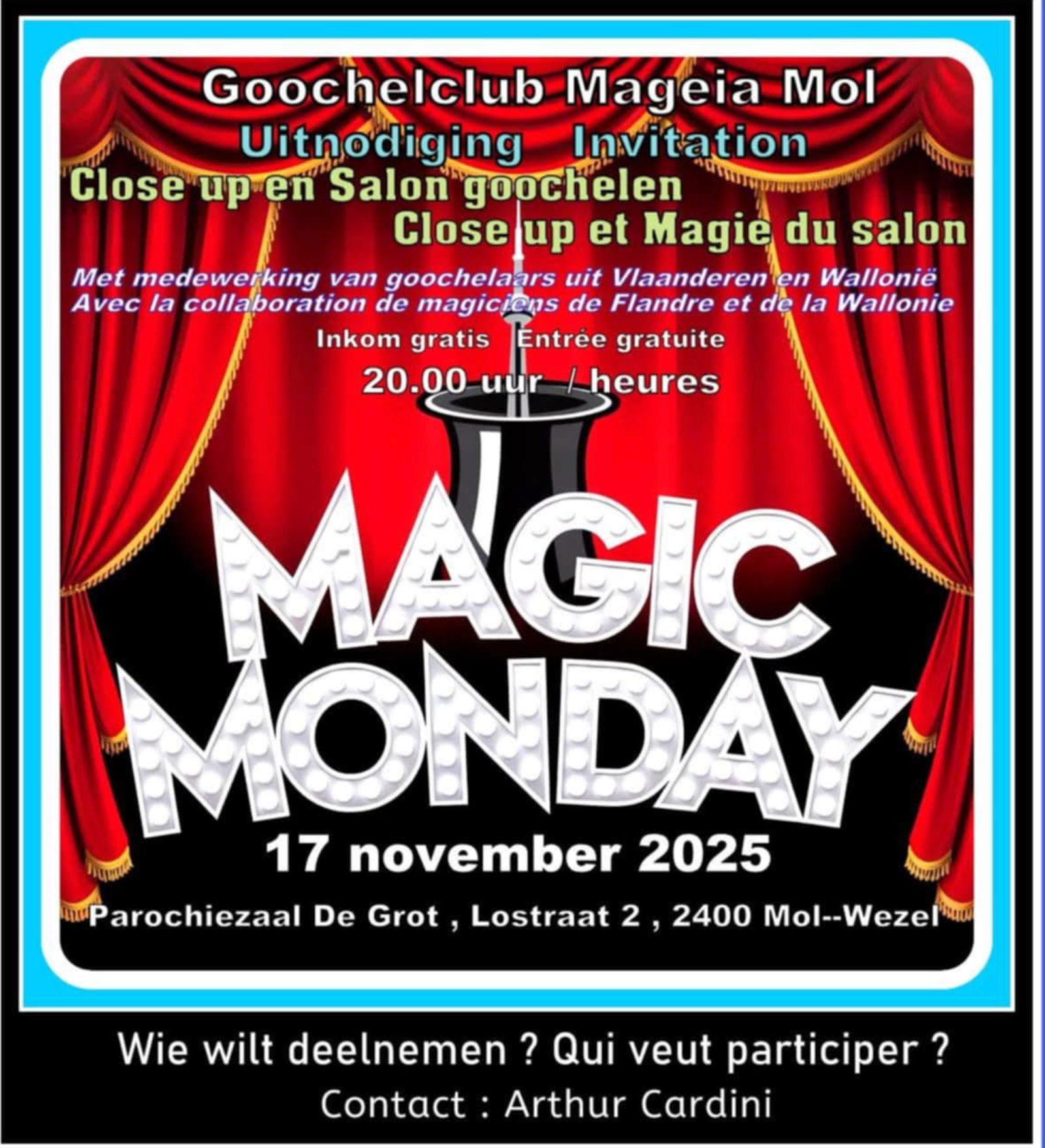 Goochelclub Mageia Mol nodigt je van harte uit voor een magische avond vol Close-up & Salon goochelen!